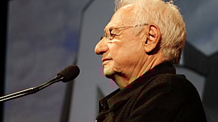 Frank Gehry giving a presentation about how the work of Gehry Partners and Gehry Technologies has driven construction innovation, 3 October 2007. [National Building Museum; photo by Paul Morigi / Wikimedia Commons. Licensed under CC BY 2.0 (https://creativecommons.org/licenses/by/2.0/deed.en)]