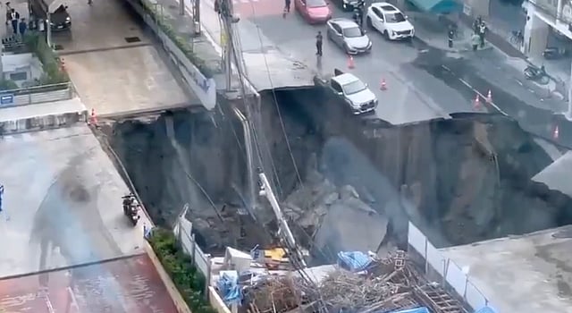 A dramatic road collapse in central Bangkok early Wednesday morning has created a vast sinkhole, severely disrupting traffic and utilities in a densely populated area near Vajira Hospital.